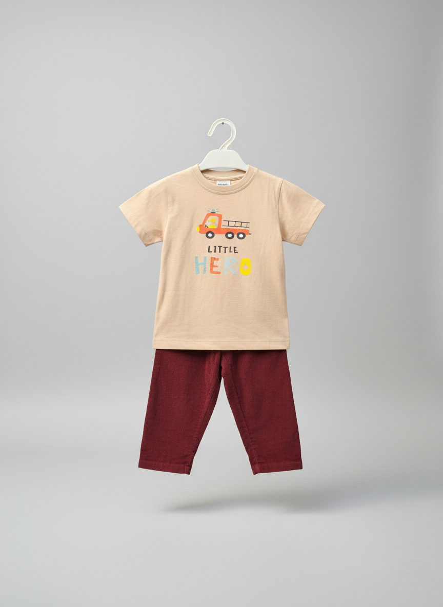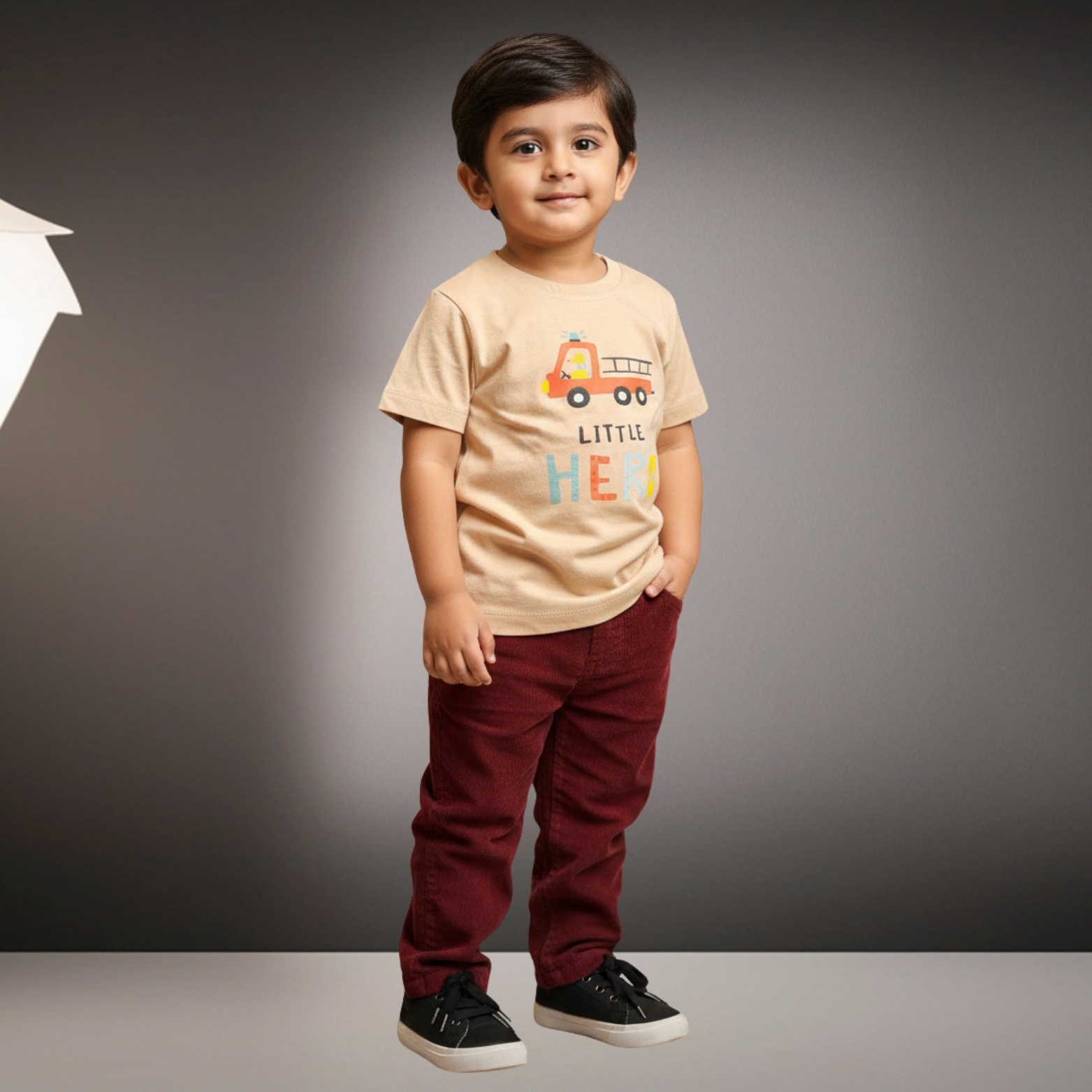 Elevate his daily rotation with the Boys Little Hero Printed T-Shirt & Pant Set. This coordinated two-piece ensemble is designed for the modern young trendsetter who values both style and mobility. Featuring a sleek, all-black polo with a 3D-textured geometric weave, this set offers a sophisticated edge to casual streetwear.