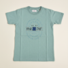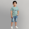 Bring a fresh, travel-inspired look to his wardrobe with the Boys Mint Green Graphic Printed Cotton T-Shirt. This t-shirt features a vibrant mint green color that instantly stands out, paired with a sophisticated circular graphic design.