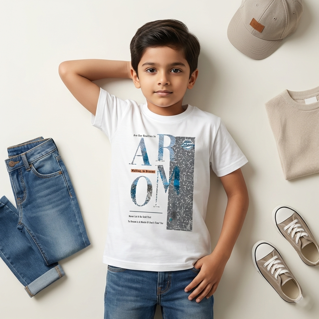 Keep his style fresh and thought-provoking with the Boys White Graphic Printed Cotton T-Shirt. This crisp white t-shirt features a large-scale, deconstructed typographic design that spells out “ARMY” in a cool, textured silver-grey print.